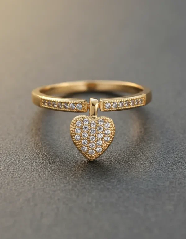 Este delicado anillo dorado con incrustaciones de circonias y un encantador dije de corazón no es solo una joya, es un recordatorio diario del amor que Dios pone en tu camino. Su diseño moderno y romántico resalta la belleza del alma y el valor de cuidar lo más profundo: tu corazón.