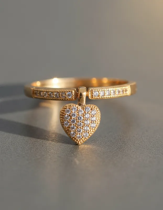 Este delicado anillo dorado con incrustaciones de circonias y un encantador dije de corazón no es solo una joya, es un recordatorio diario del amor que Dios pone en tu camino. Su diseño moderno y romántico resalta la belleza del alma y el valor de cuidar lo más profundo: tu corazón.