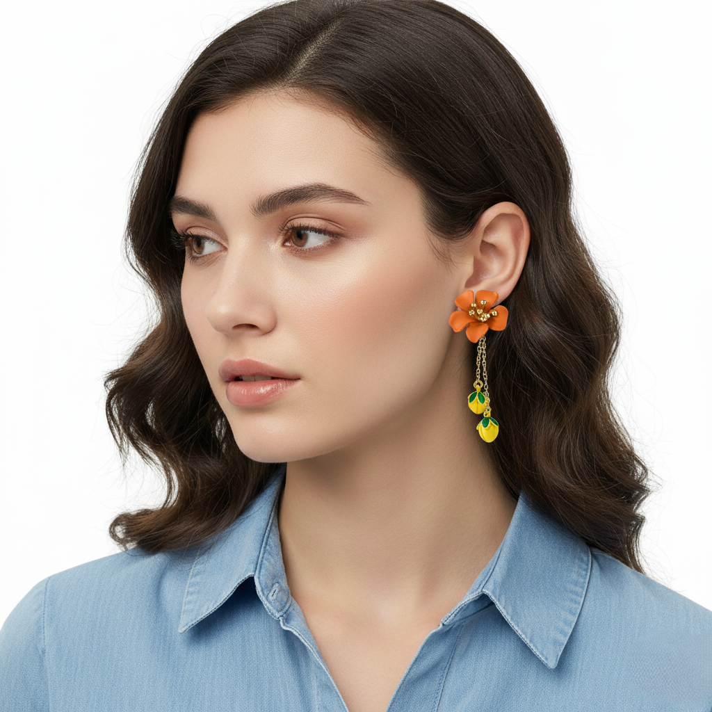 Aretes Florales Colgantes con Detalle Frutal | Veramorest