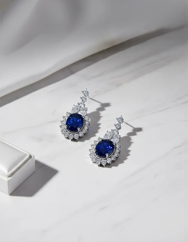 Diseñados para mujeres que quieren destacar con elegancia, los Aretes Llamado Real combinan una impactante piedra azul estilo zafiro con un halo de cristales en corte brillante. Su diseño tipo lágrima aporta un toque clásico y glamuroso, ideal para eventos especiales, cenas, celebraciones o para elevar tu look diario.