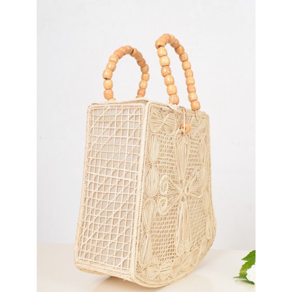 • Hermoso bolso elaborado 100% a mano en palma de iraca, con forro color beige, cierre con tapa y broche.
