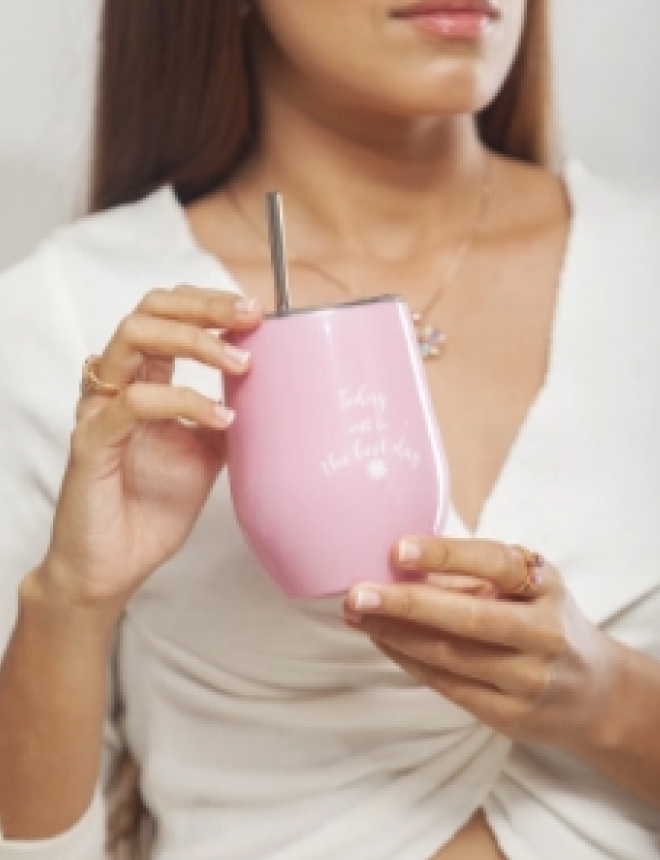 Hermoso Termo-Vaso en acero inoxidable color rosa, calidad premium, lo cual permite que sea irrompible.